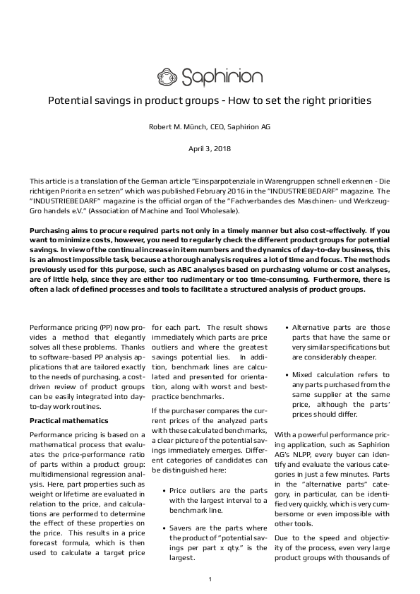 Potential savings in product groups - How to set the right priorities