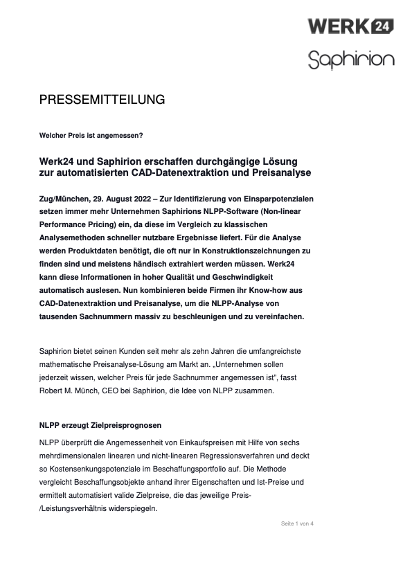 Cooperation Werk24 & Saphirion